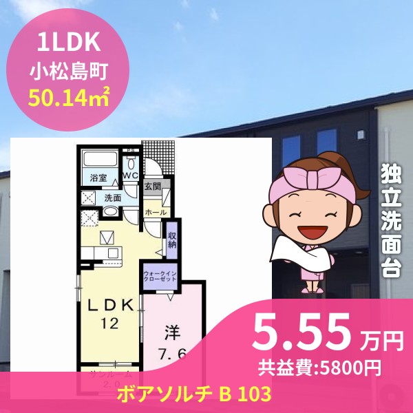 女性に特に喜ばれる独立洗面台のあるお部屋です