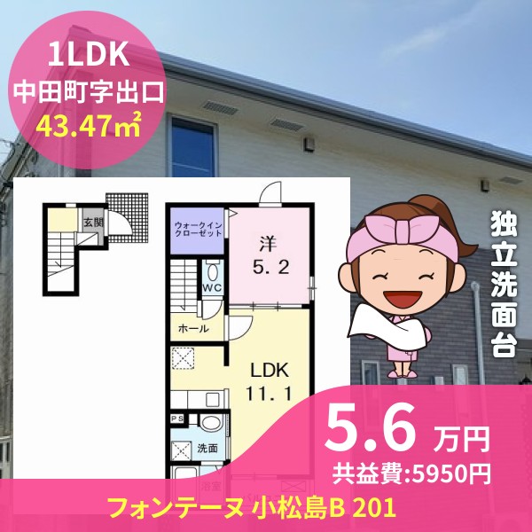 月額賃料は5.6万円で、共益費は5950円です