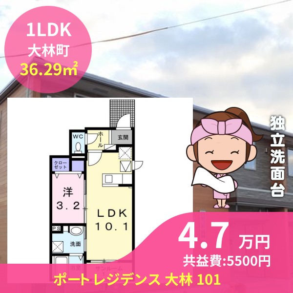 女性に特に喜ばれる独立洗面台のあるお部屋です