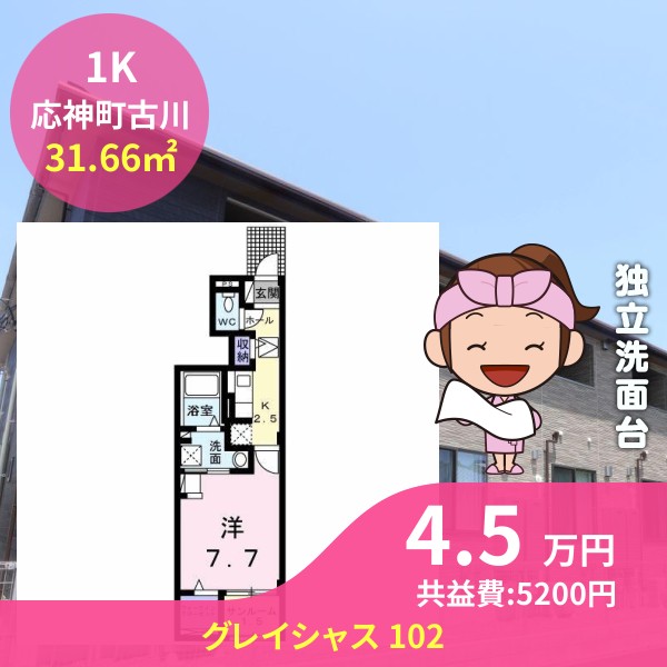 月額賃料は4.5万円で、共益費は5200円です