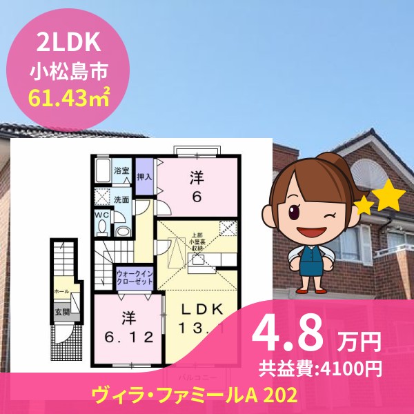 間取りは2LDKで61.43㎡の広さです