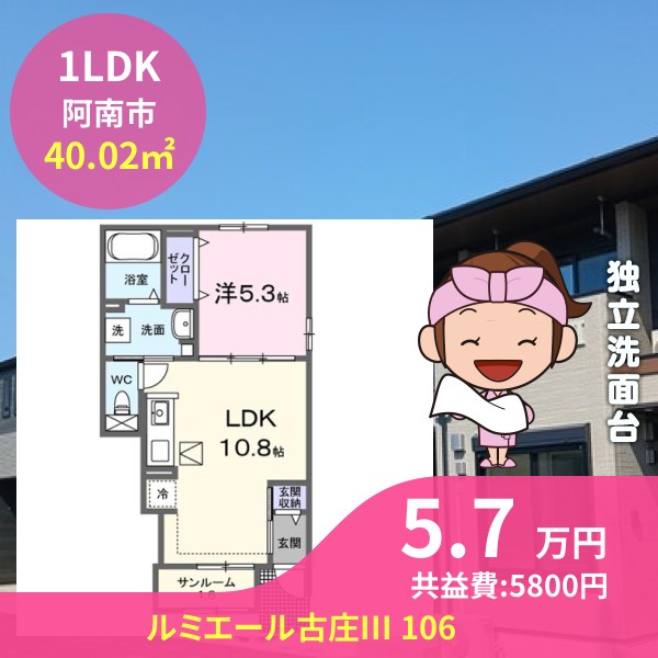 阿南市羽ノ浦町古庄のルミエール古庄III 106をご紹介します
