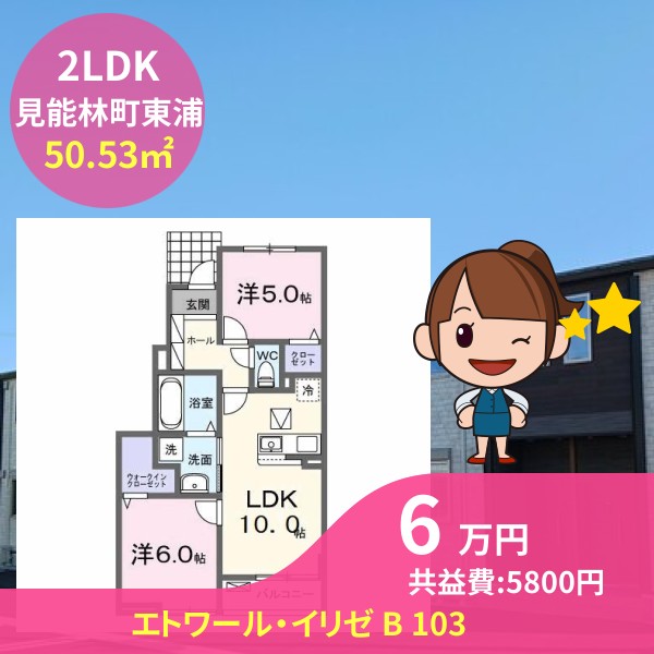 月額賃料は6万円で、共益費は5800円です