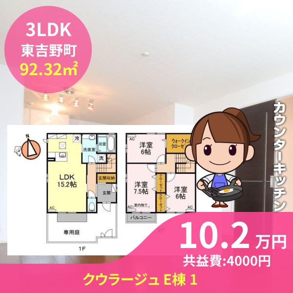 徳島市東吉野町のクウラージュ E棟 1をご紹介します