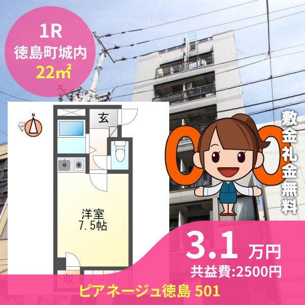 徳島市徳島町城内のピアネージュ徳島 501をご紹介します