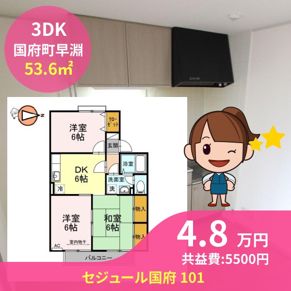 月額賃料は4.8万円で、共益費は5500円です