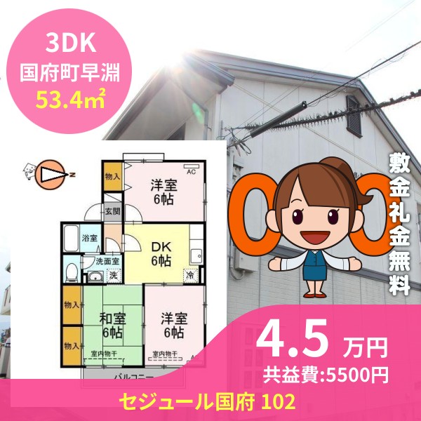徳島市国府町早淵のセジュール国府 102をご紹介します