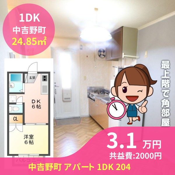 中吉野町 アパート 1DK 204