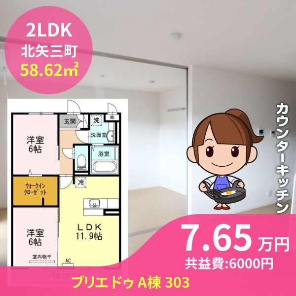 間取りは2LDKで58.62㎡の広さです