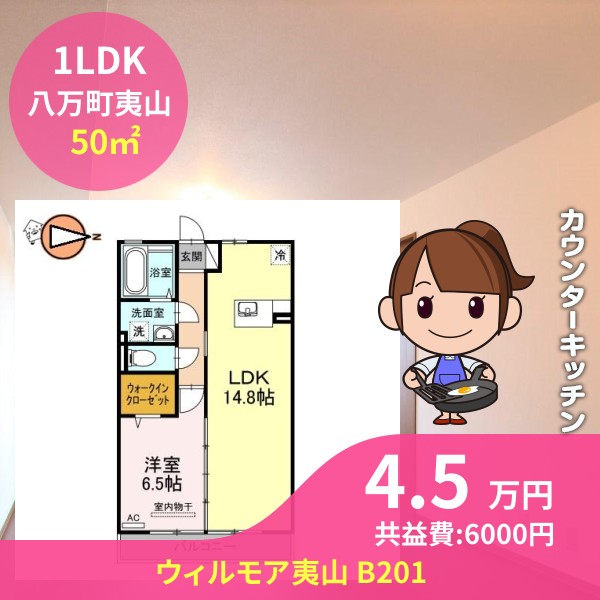 間取りは1LDKで50㎡の広さです