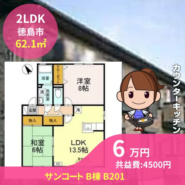 徳島市川内町平石古田のサンコート B棟 B201をご紹介します