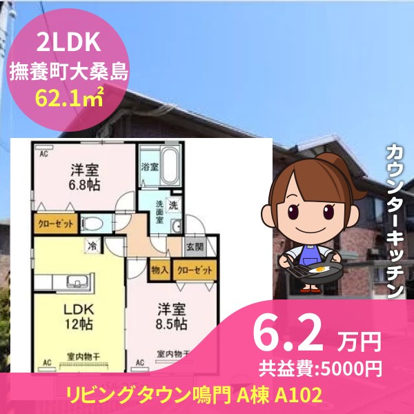 鳴門市撫養町大桑島のリビングタウン鳴門 A棟 A102をご紹介します