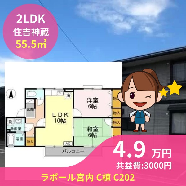 板野郡藍住町住吉神蔵のラポール宮内 C棟 C202をご紹介します
