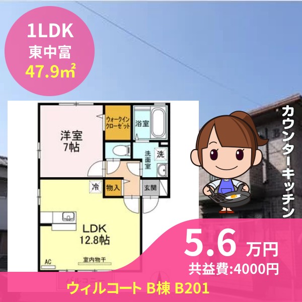 板野郡藍住町東中富のウィルコート B棟 B201をご紹介します