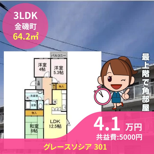 人気の最上階の角部屋に空きが出ました
