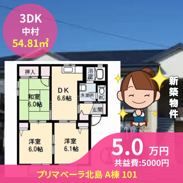 板野郡北島町中村のプリマベーラ北島 A棟 101をご紹介します