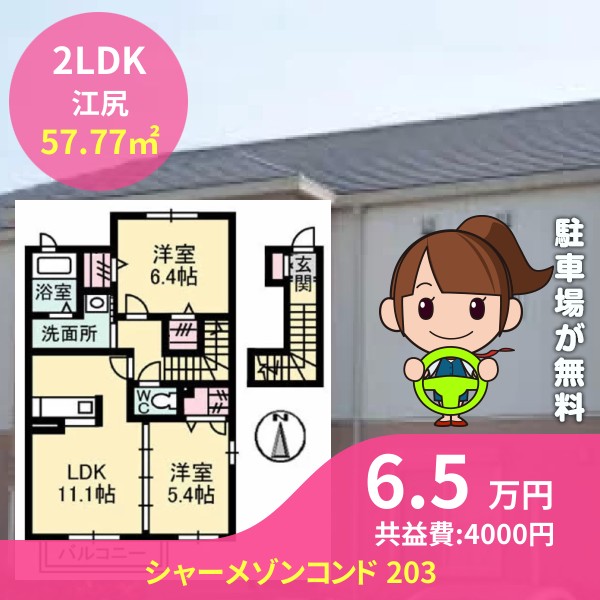 月額賃料は6.5万円で、共益費は4000円です
