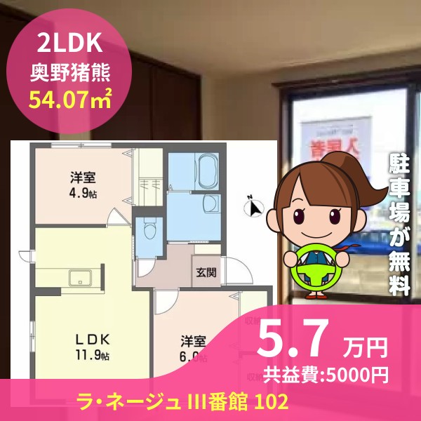 板野郡藍住町奥野猪熊のラ・ネージュ III番館 102をご紹介します