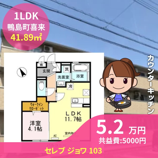 間取りは1LDKで41.89㎡の広さです