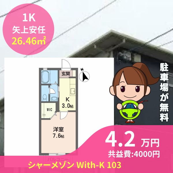 板野郡藍住町矢上安任のシャーメゾン With-K 103をご紹介します