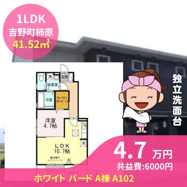 阿波市吉野町柿原のホワイト バード A棟 A102をご紹介します
