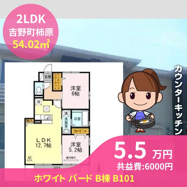 阿波市吉野町柿原のホワイト バード B棟 B101をご紹介します