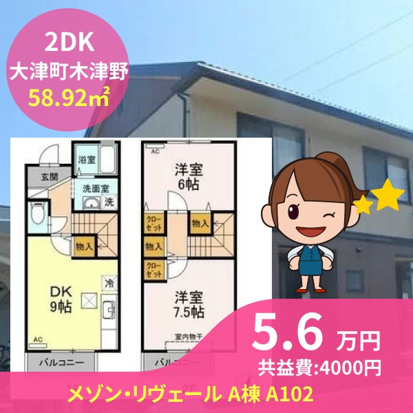 月額賃料は5.6万円で、共益費は4000円です