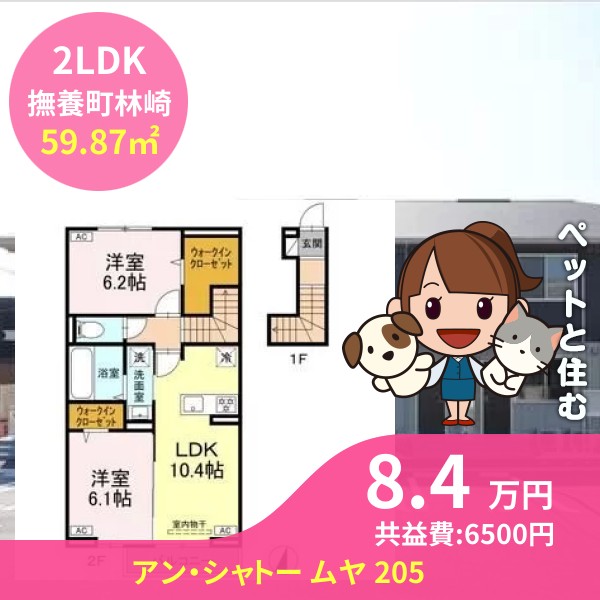 月額賃料は8.4万円で、共益費は6500円です