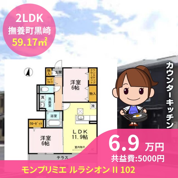 間取りは2LDKで59.17㎡の広さです