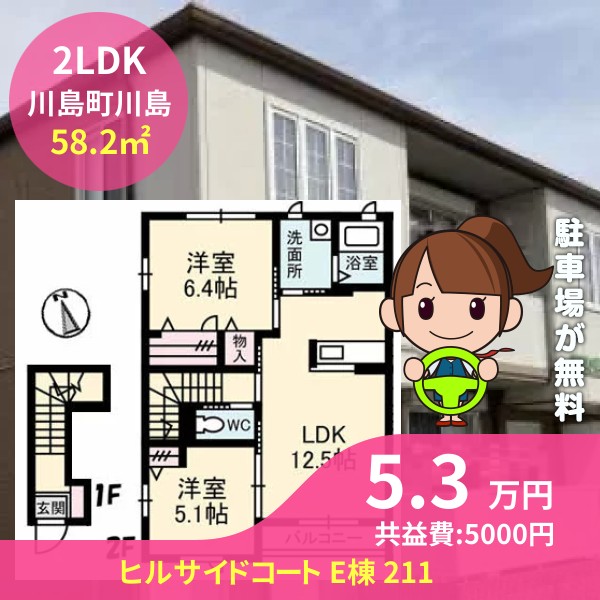 吉野川市川島町川島のヒルサイドコート E棟 211をご紹介します