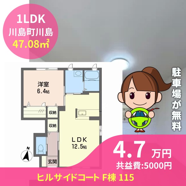 間取りは1LDKで47.08㎡の広さです